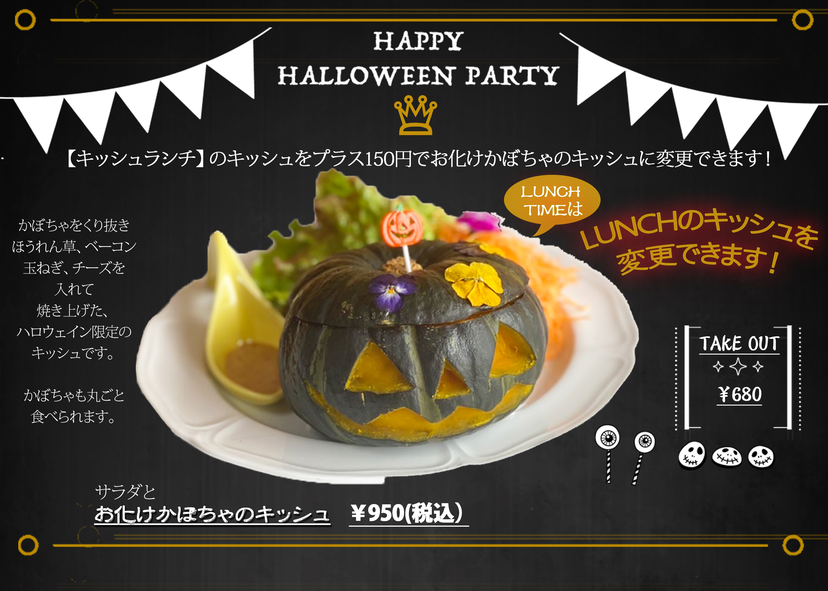 キッシュランチ(1480円)のキッシュをお化けかぼちゃのキッシュに変更できます。(プラス150円)