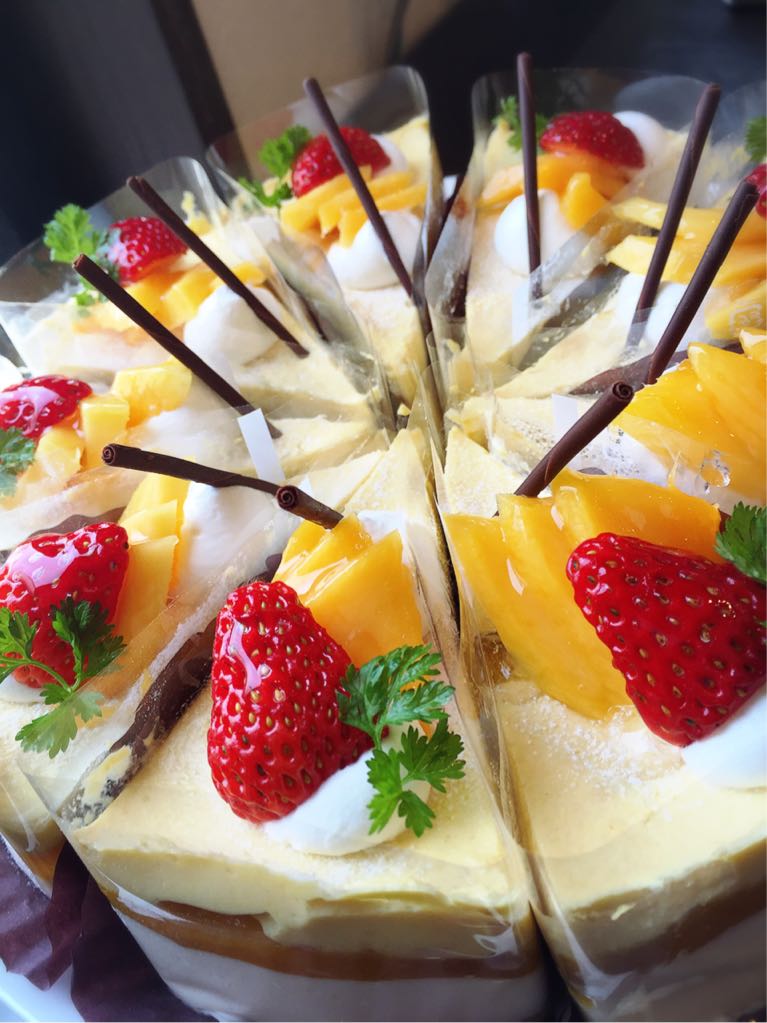 マンゴーを使った3層のレアチーズケーキです。