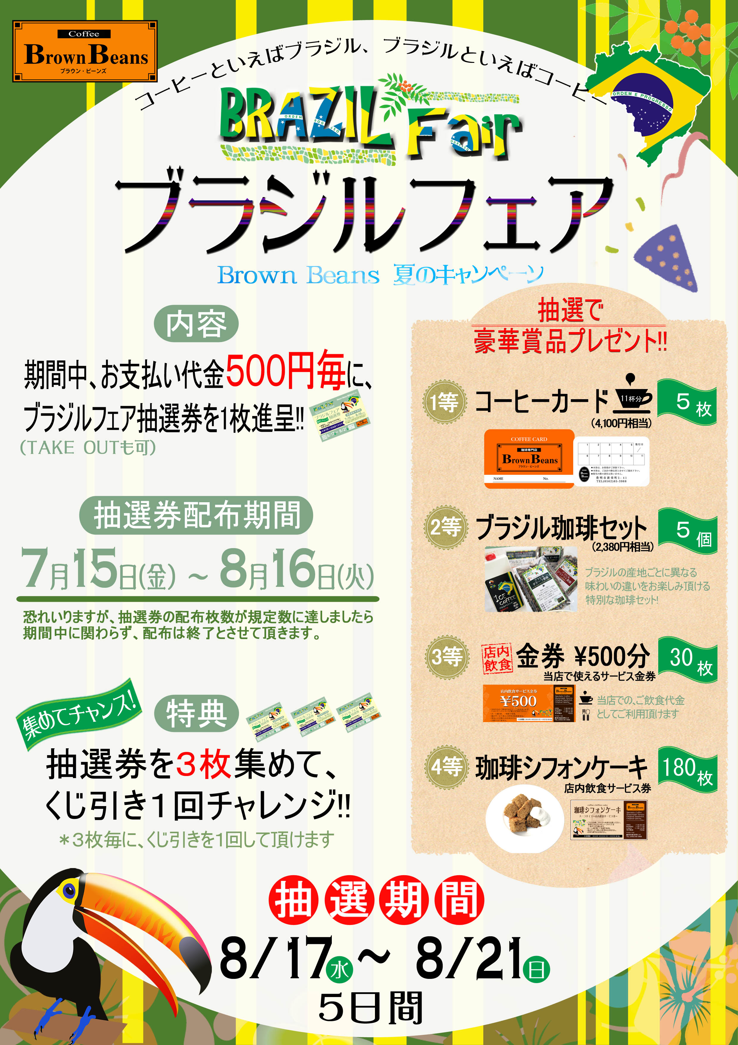 Brown Beansでは7月15日(金)~8月16日(火)までブラジルフェアを行っております。