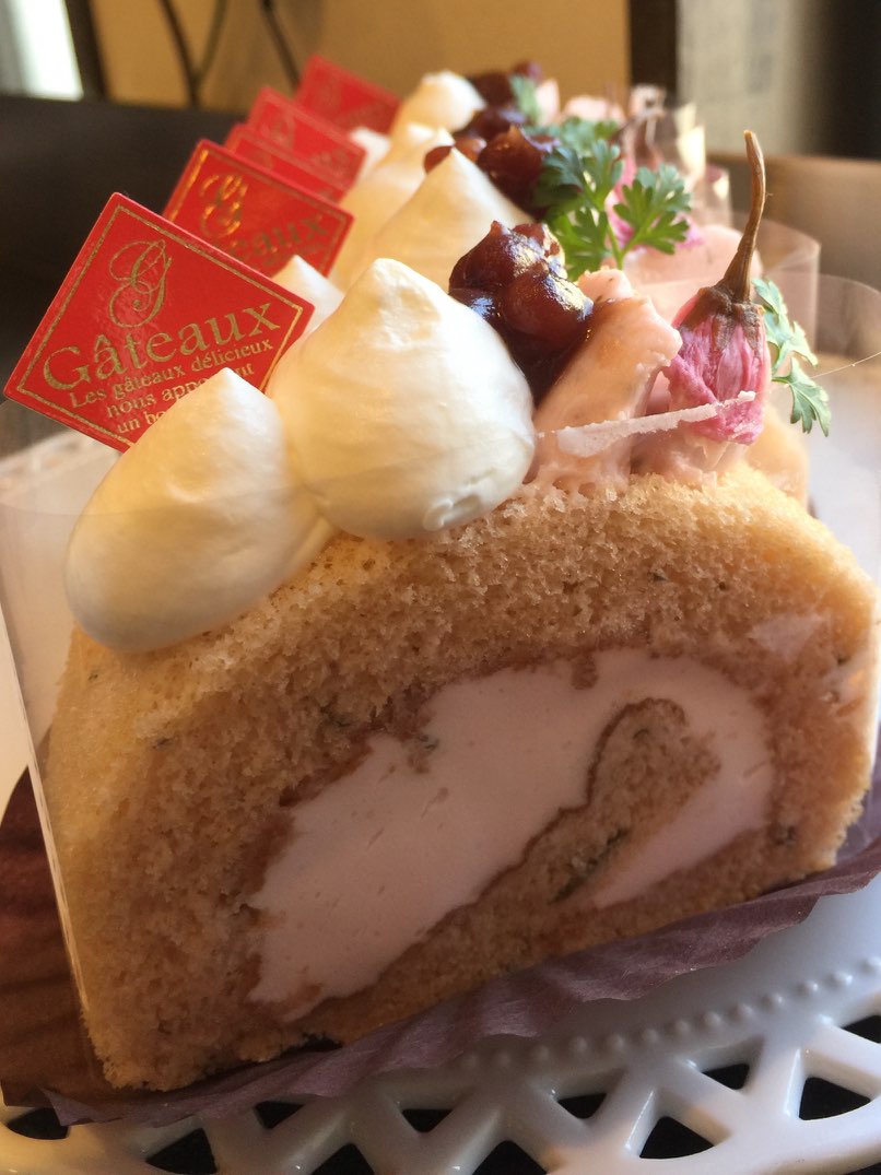 ブラウンビーンズでは、桜ラテや桜シフォンケーキ、桜ロールケーキなど