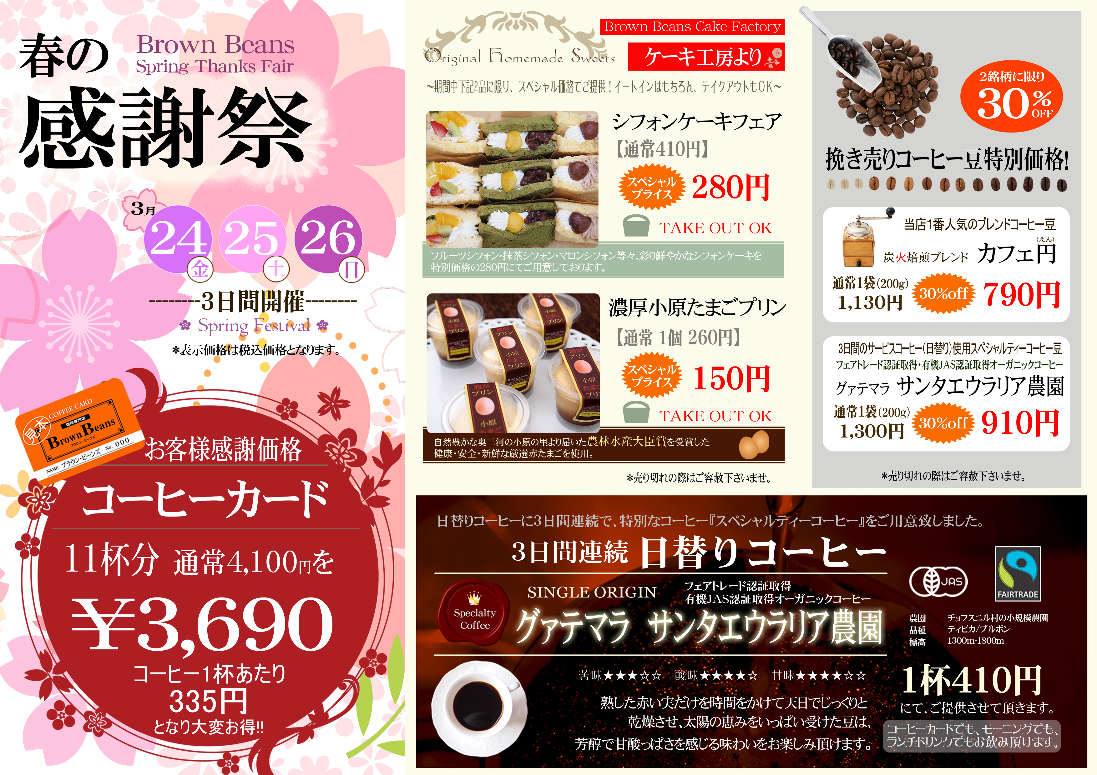 コーヒー豆の割引販売など、この機会にぜひお買い求めくださいませ。
