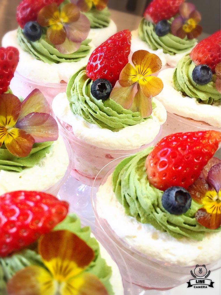 いちごのムースの上に、抹茶のクリームと