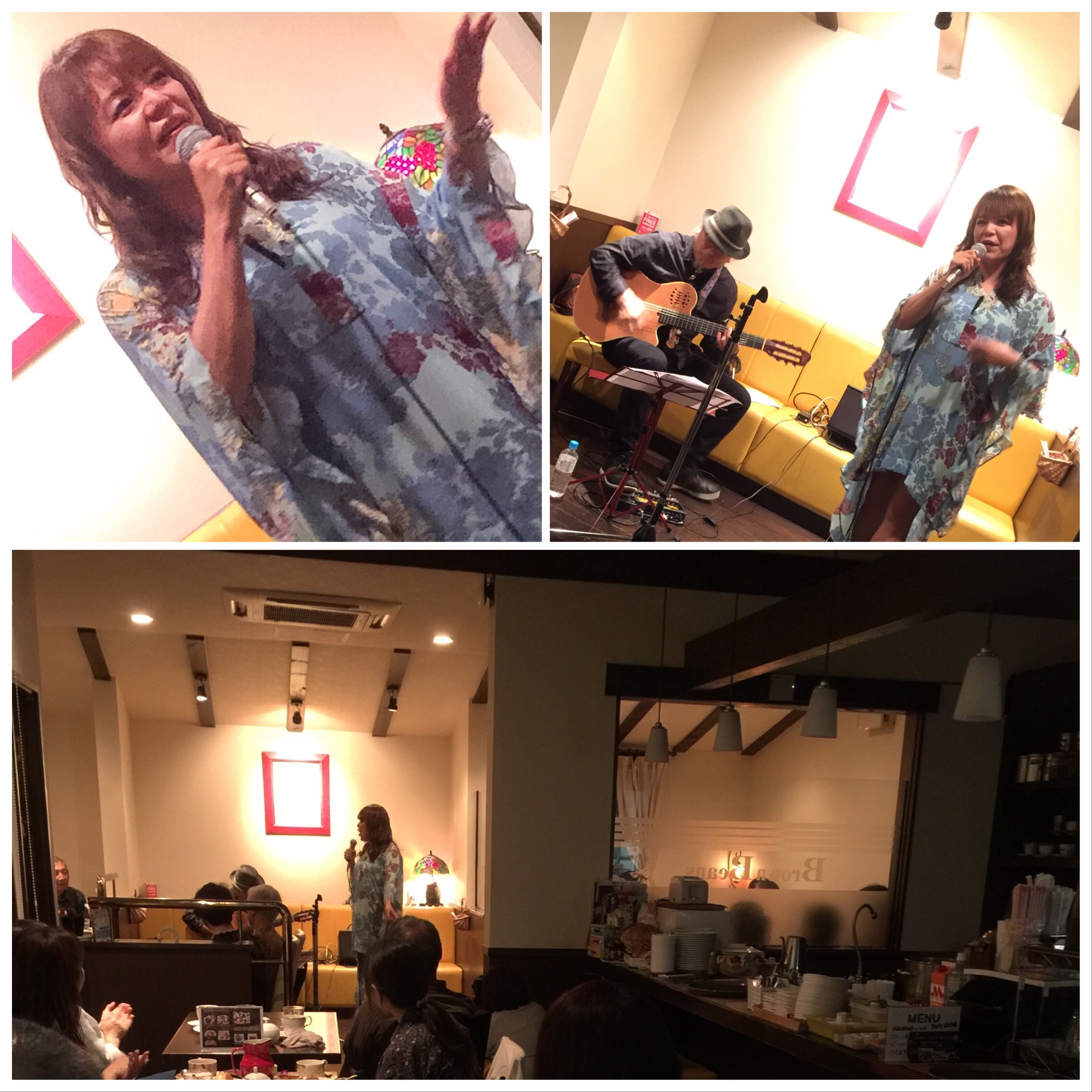 少し激し目な雷雨も一時はありましたが、ブラウンビーンズの店内は、照明を落として、チアさんと歌声と、道下さんのギターの音色に包みこまれた別空間、雷などには⚡️気を取られないほど素敵な時間でした