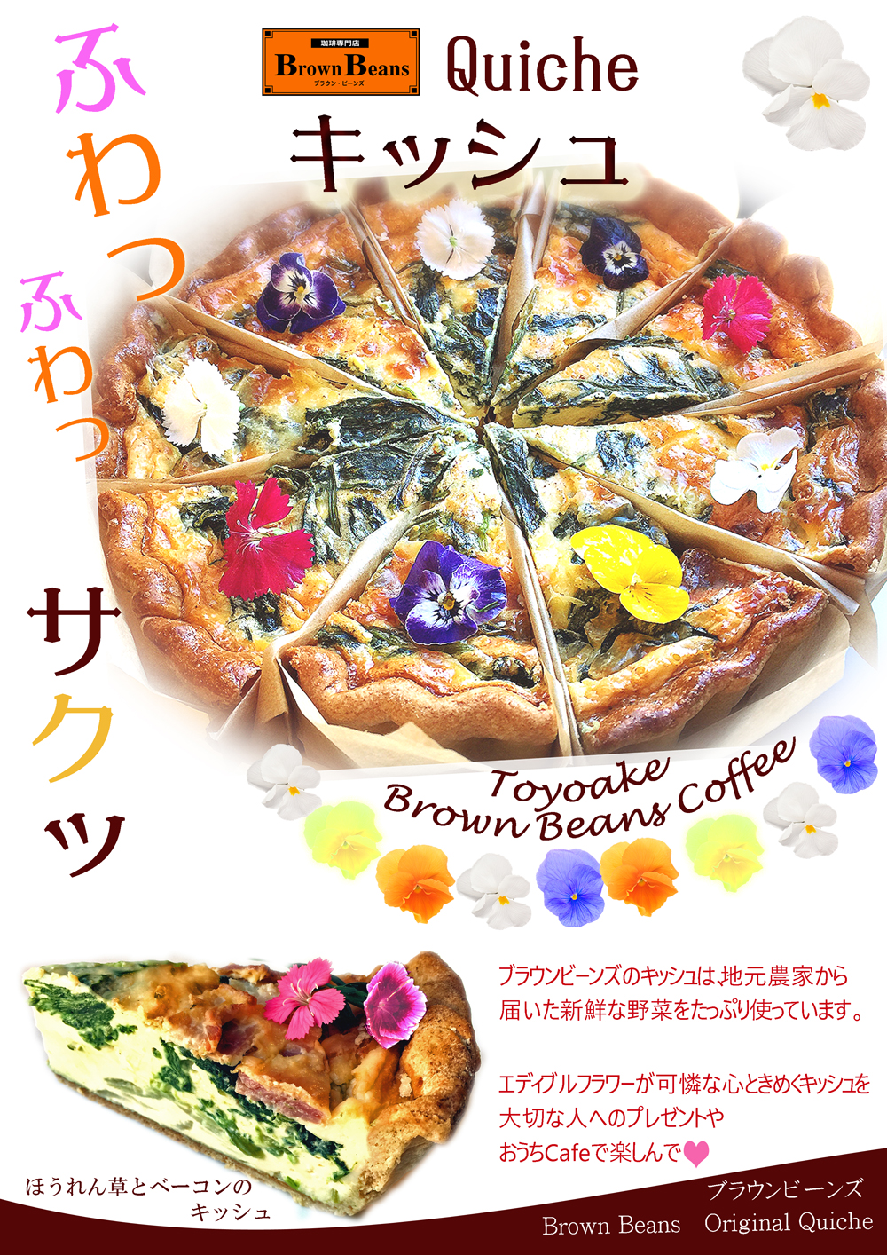 ブラウンビーンズのキッシュはお持ち帰りもできます!