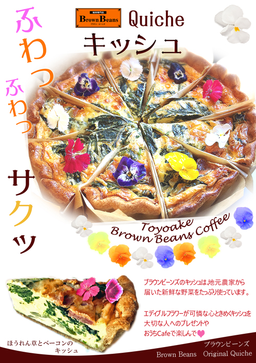 ブラウンビーンズからはふわっふわっ、サクサクのキッシュを販売いたします。