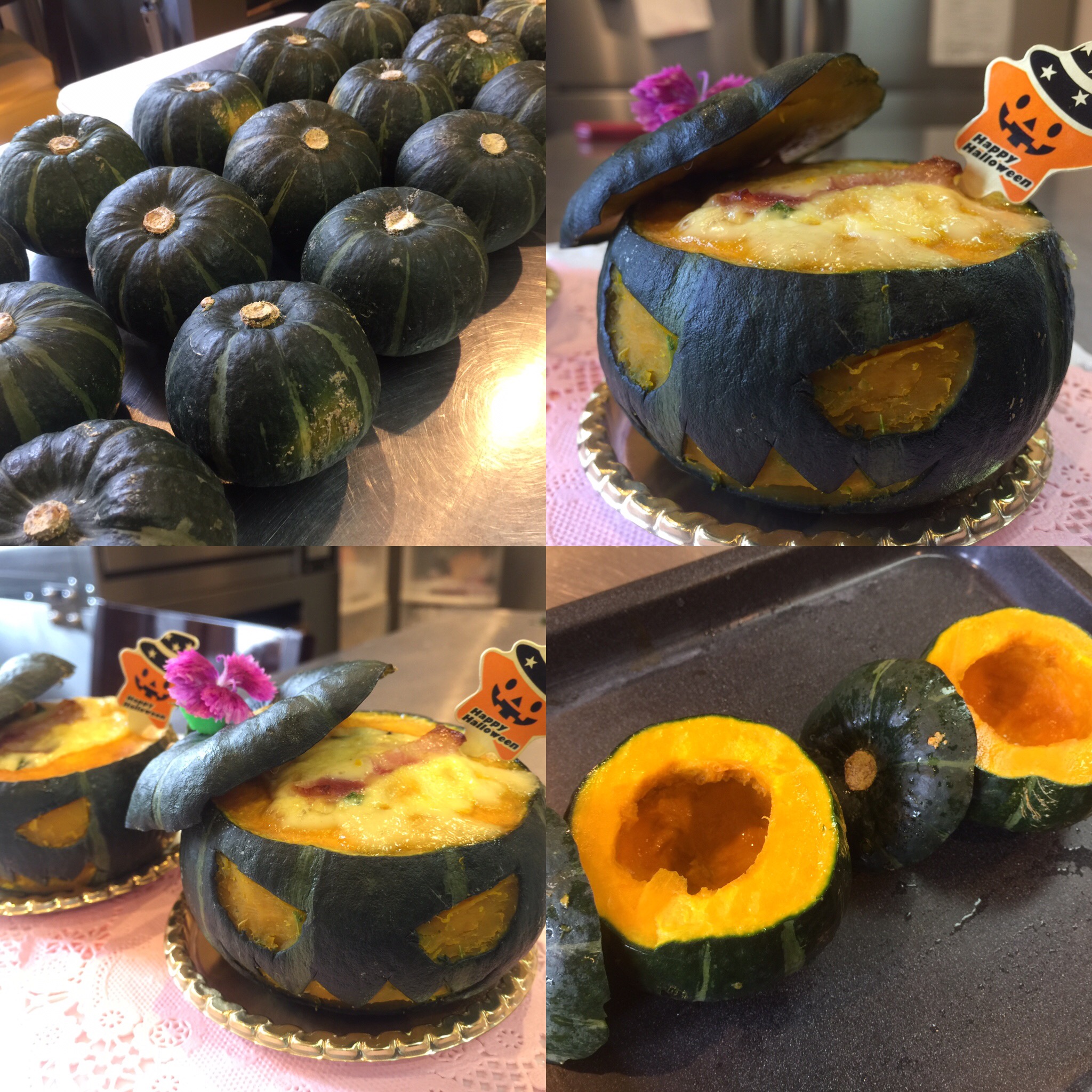 かぼちゃをくり抜いて作り、丸ごと食べれるキッシュです。お化けかぼちゃのキッシュにエディブルフラワーを飾り可愛らしい中にホラーを感じる、ハロウィン限定☆お化けかぼちゃのキッシュです!(具材はほうれん草とベーコン、玉ねぎ、チーズが入っています)