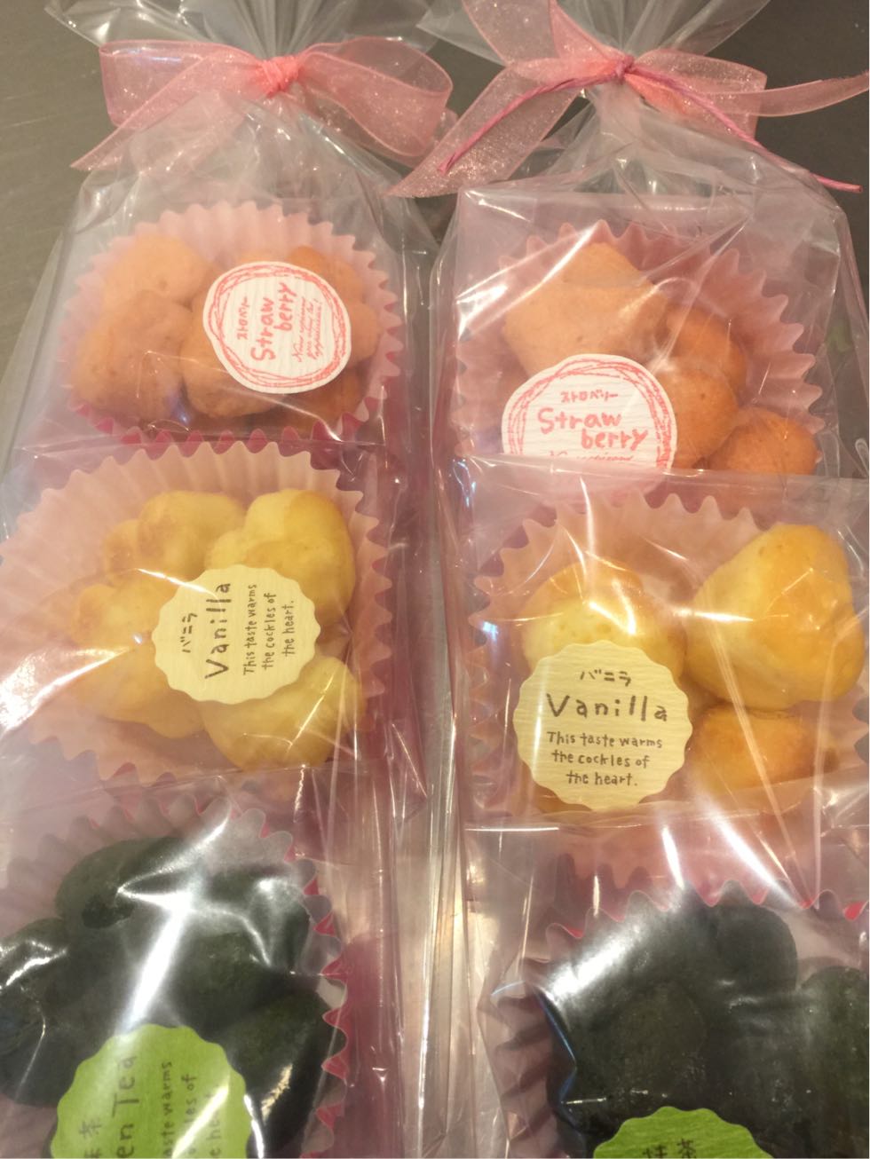 雛あられ風の小さなハート型のマドレーヌを焼きました。