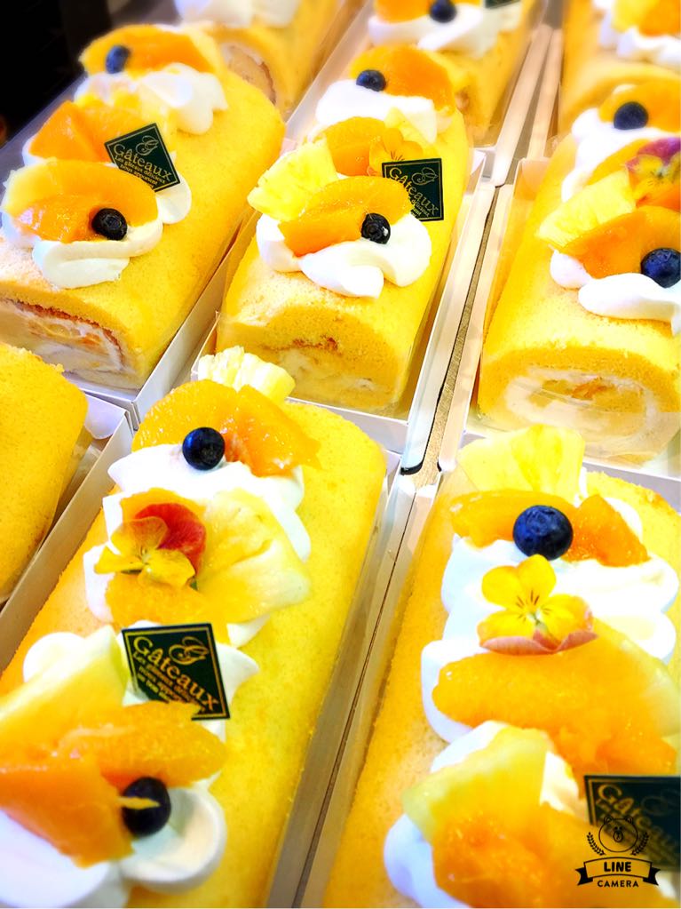 5月のサービスロールケーキのマンゴーロール、色あざやかに出来上がりました‼️
