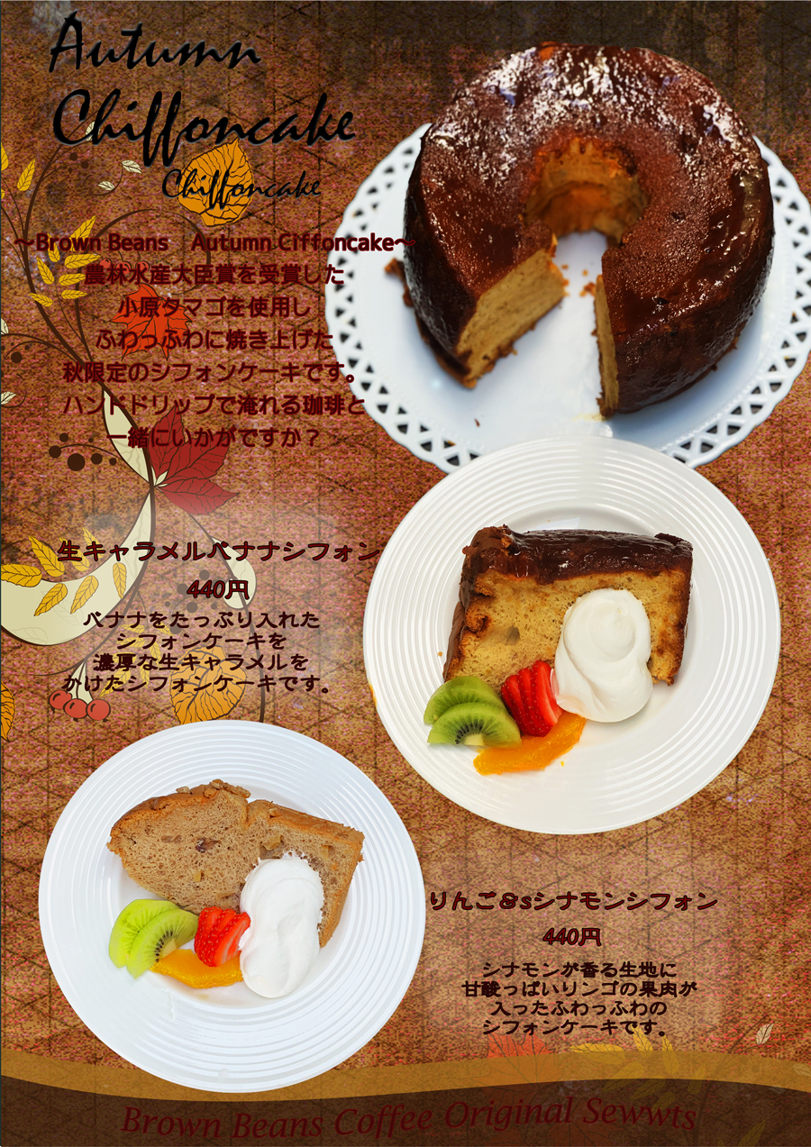 11月は、秋をイメージするシフォンケーキ2種を販売いたします